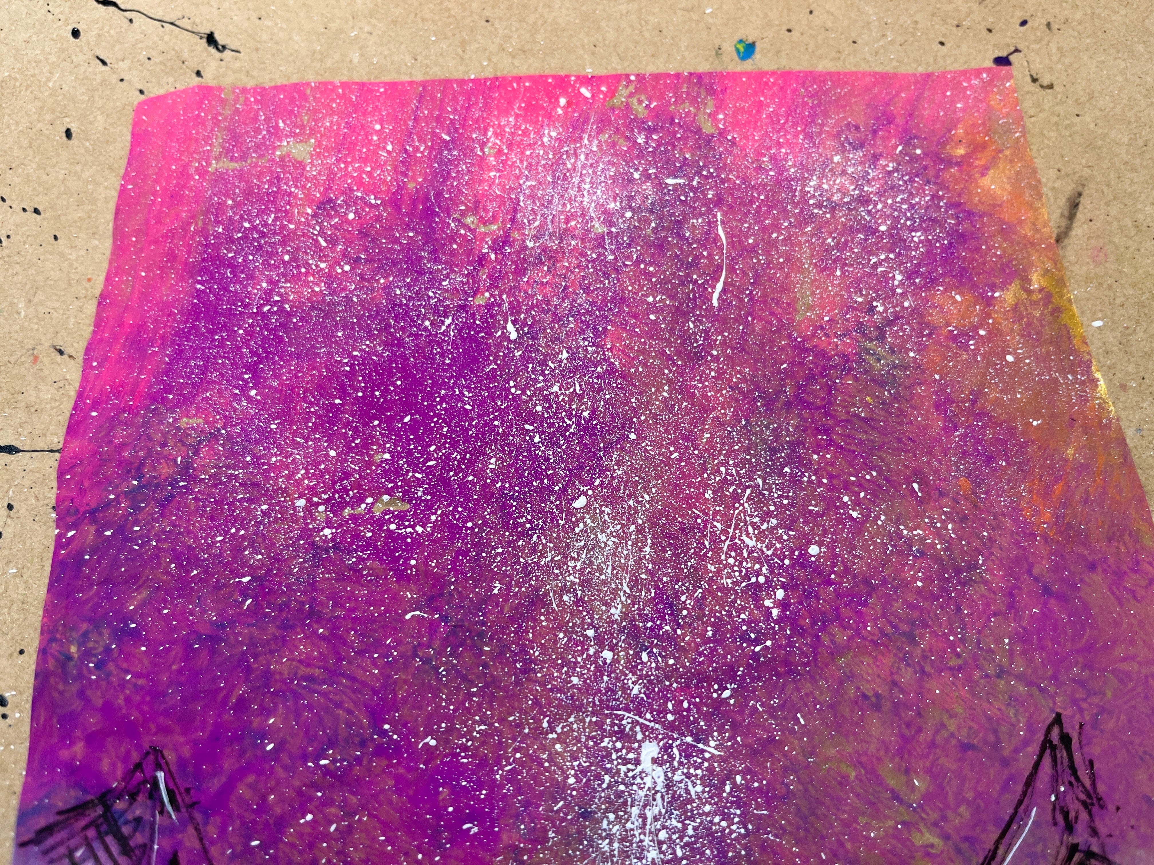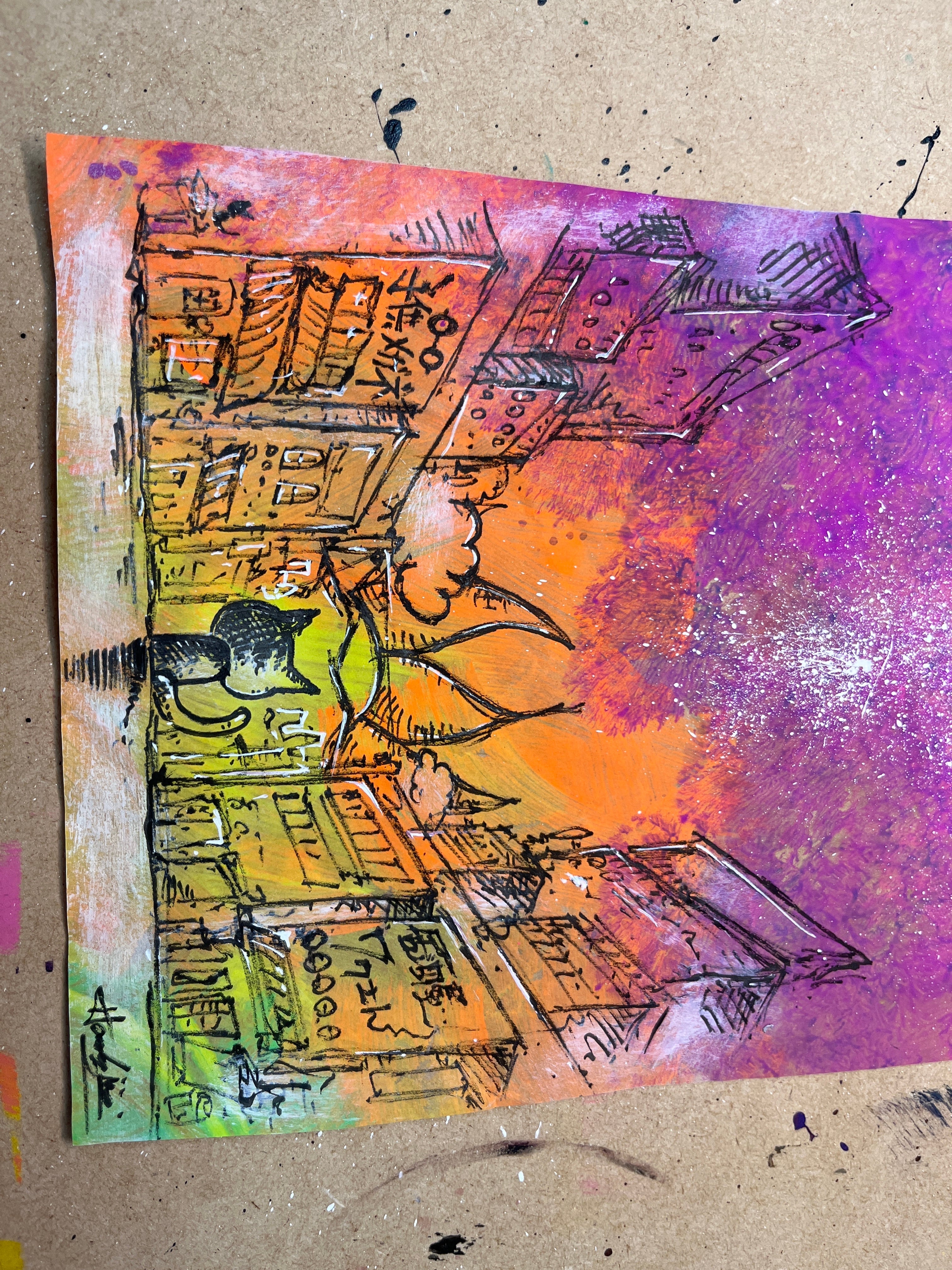 紙、紙用サインペン、水彩絵の具、アクリル絵の具、ポスカ