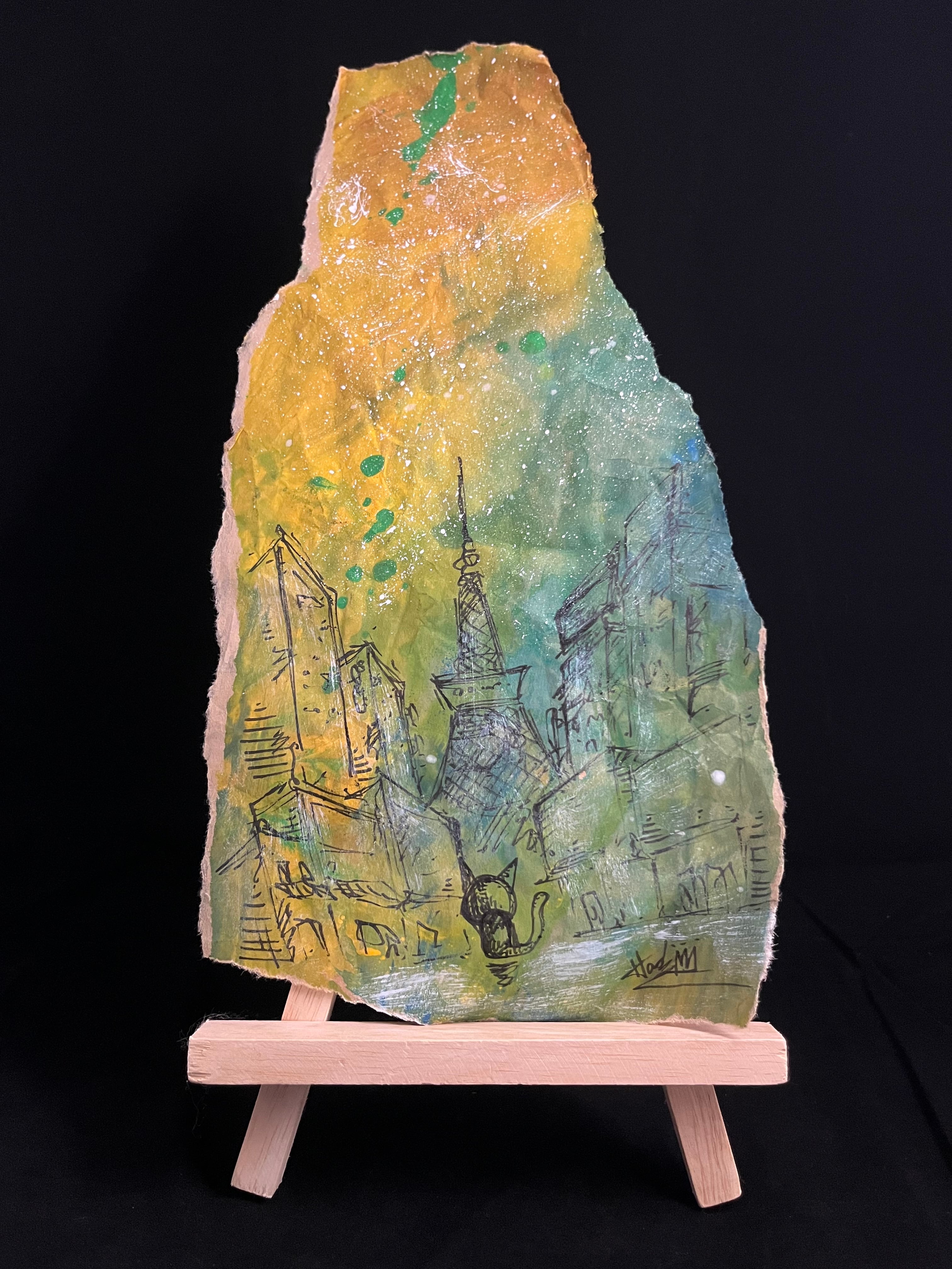 架空の街Rockin' Samurai Cityの様々な街や場所にネコが行きその風景を一緒に眺める『ネコの観る風景のシリーズ』より。