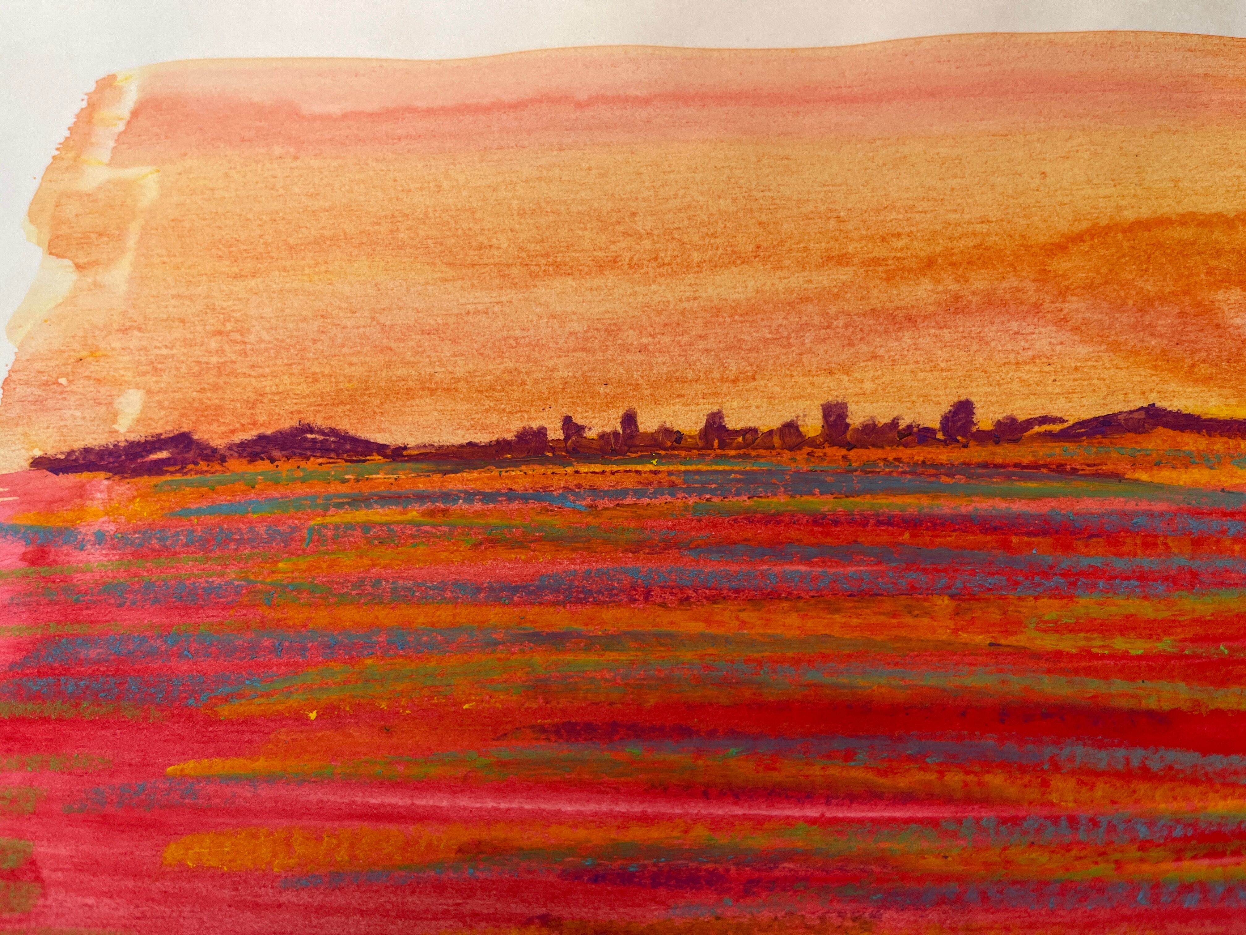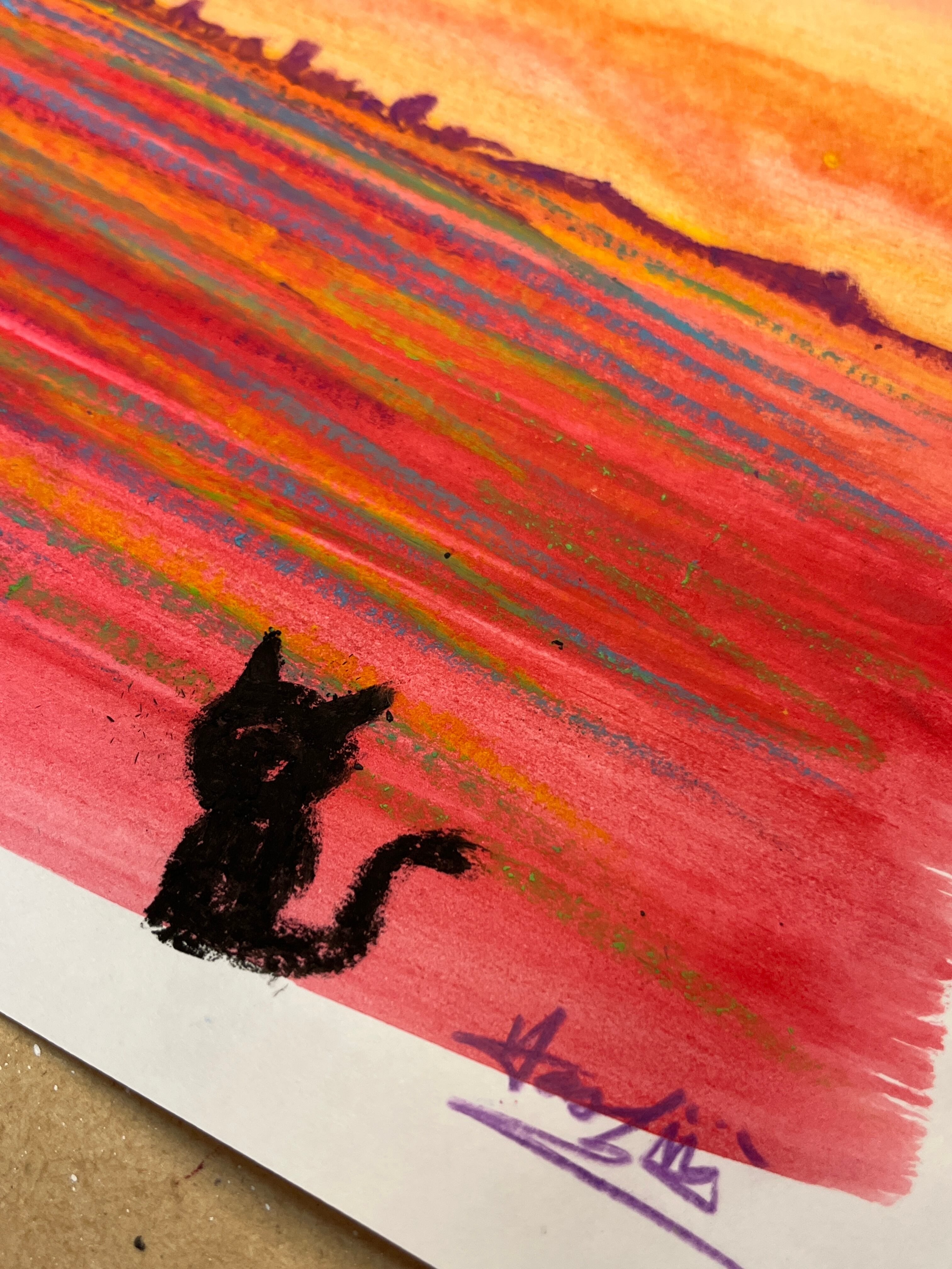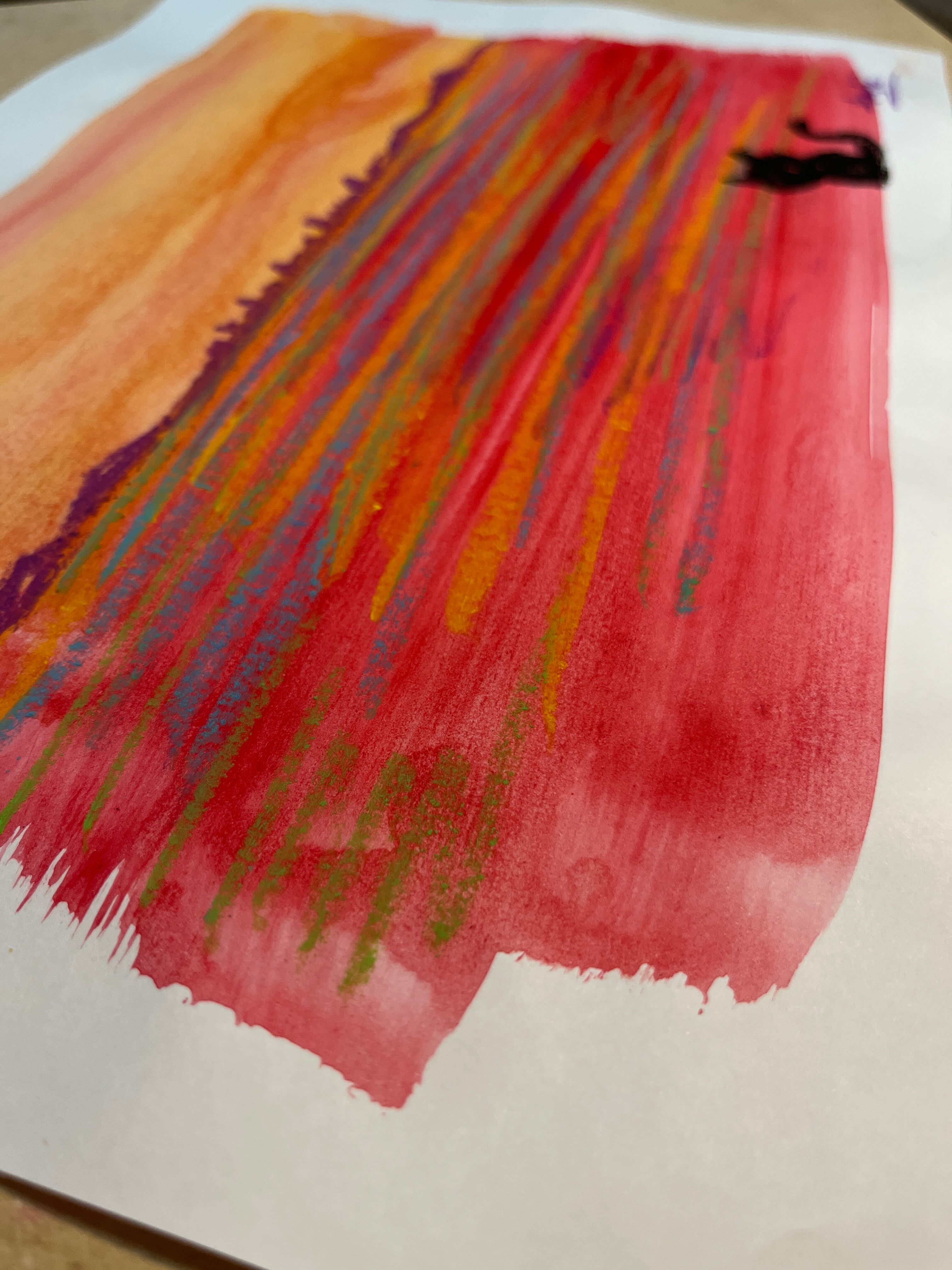紙、紙用サインペン、水彩絵の具、クレヨン