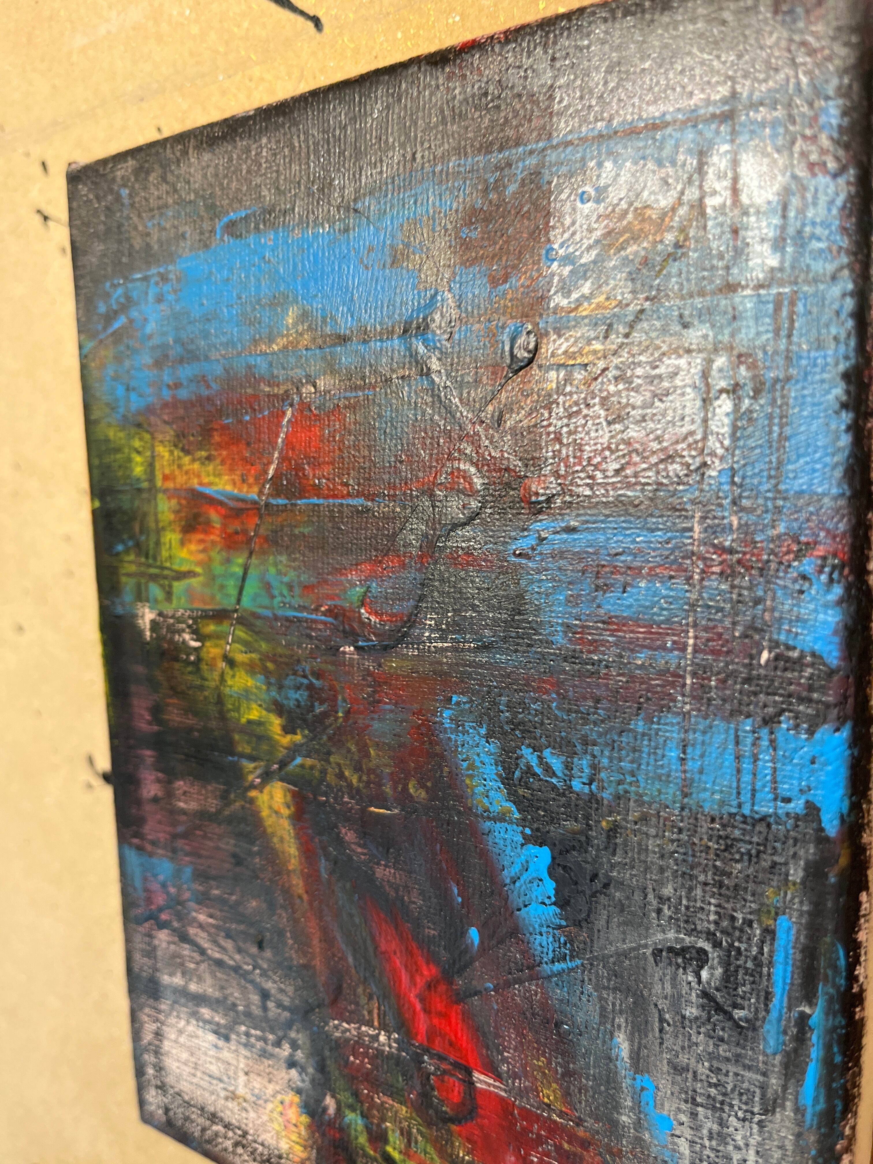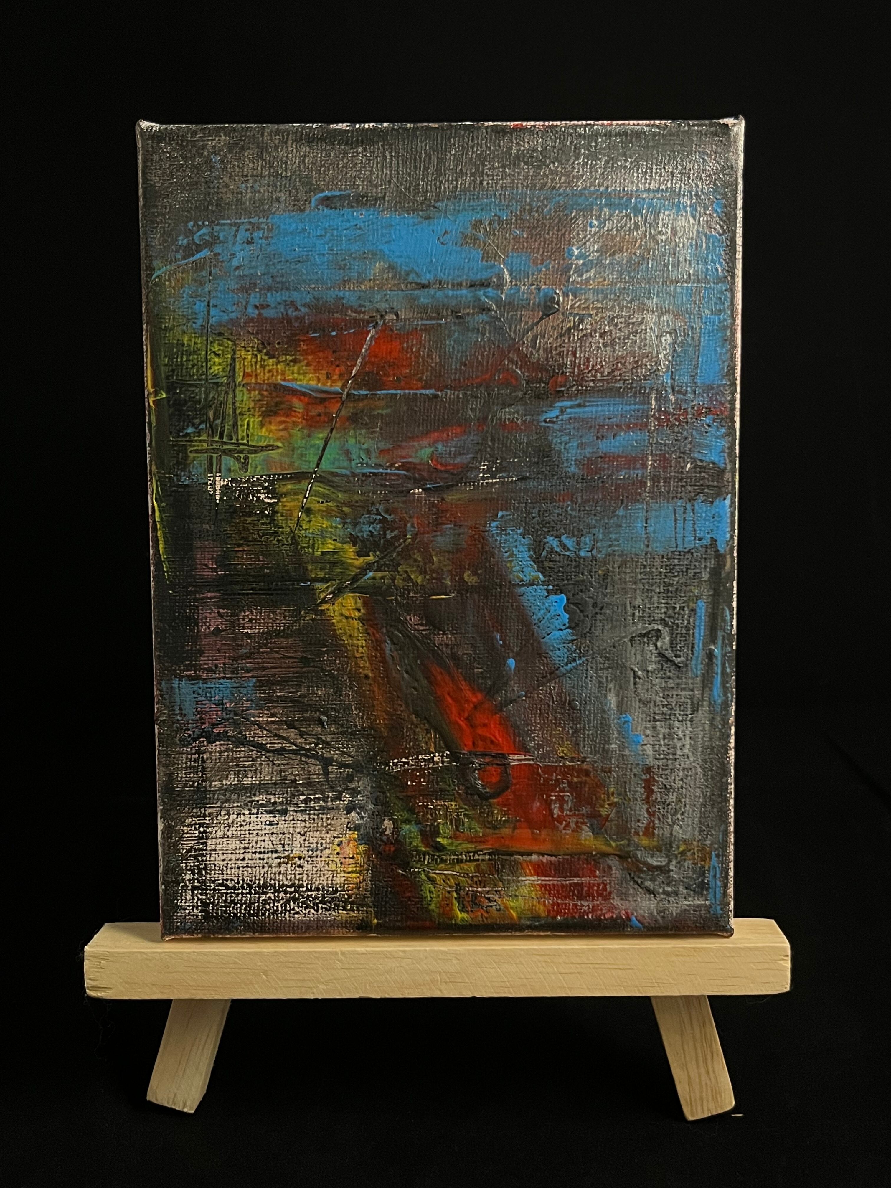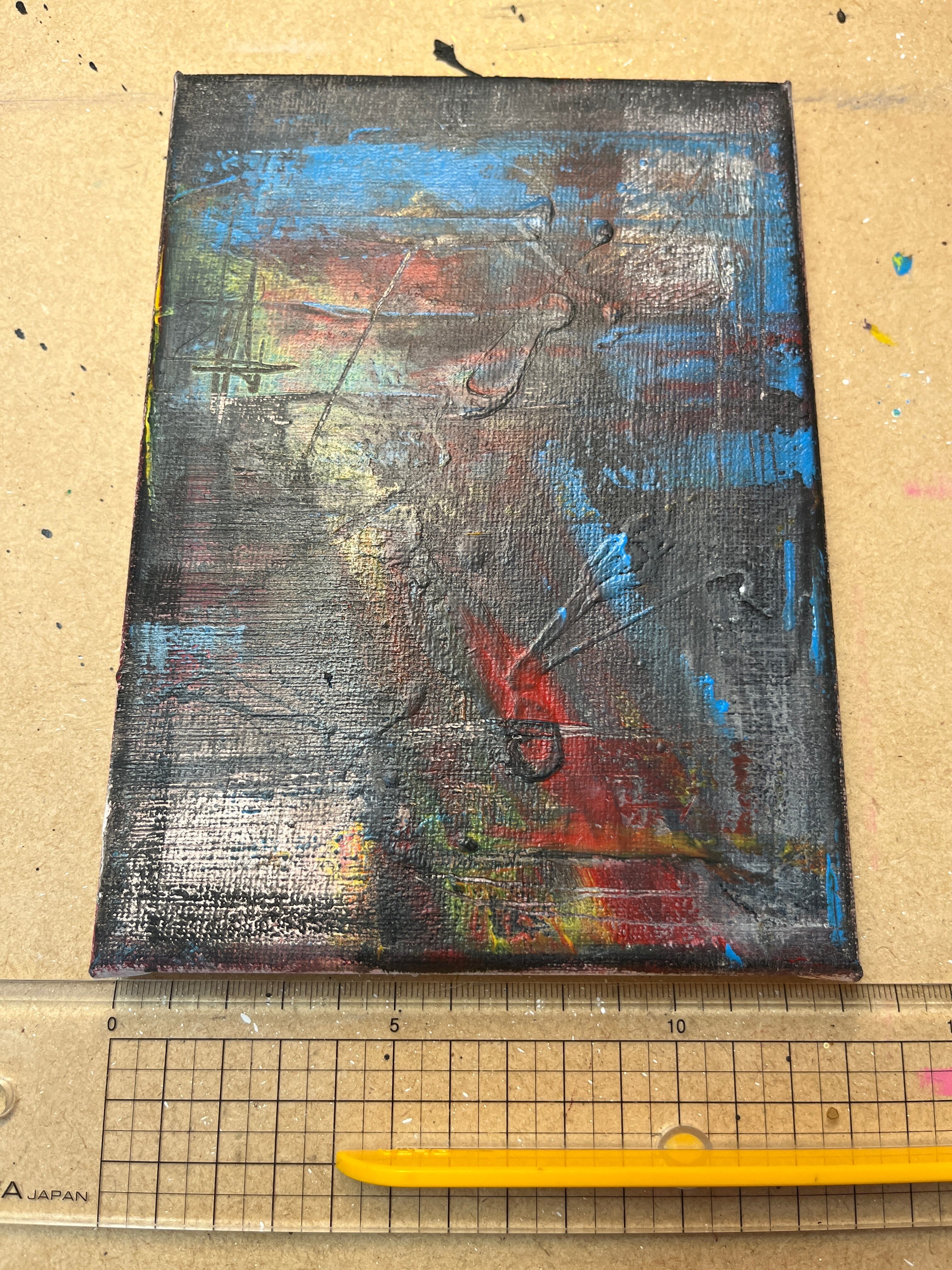 頭にあるビジョンを今までに描いた絵の技法と様々な画材で表現し、そこに今ある想いを融合して奏でた抽象画。