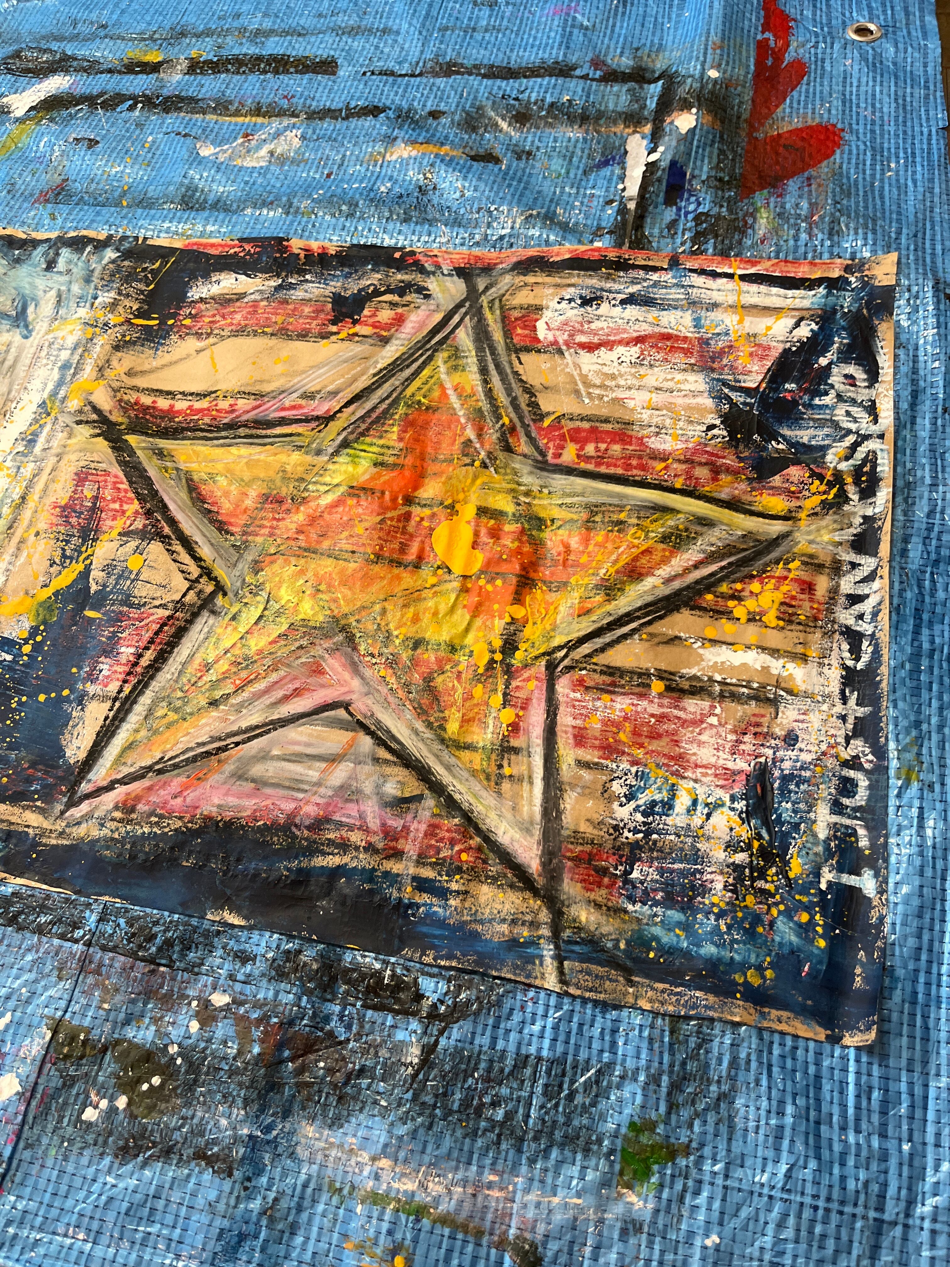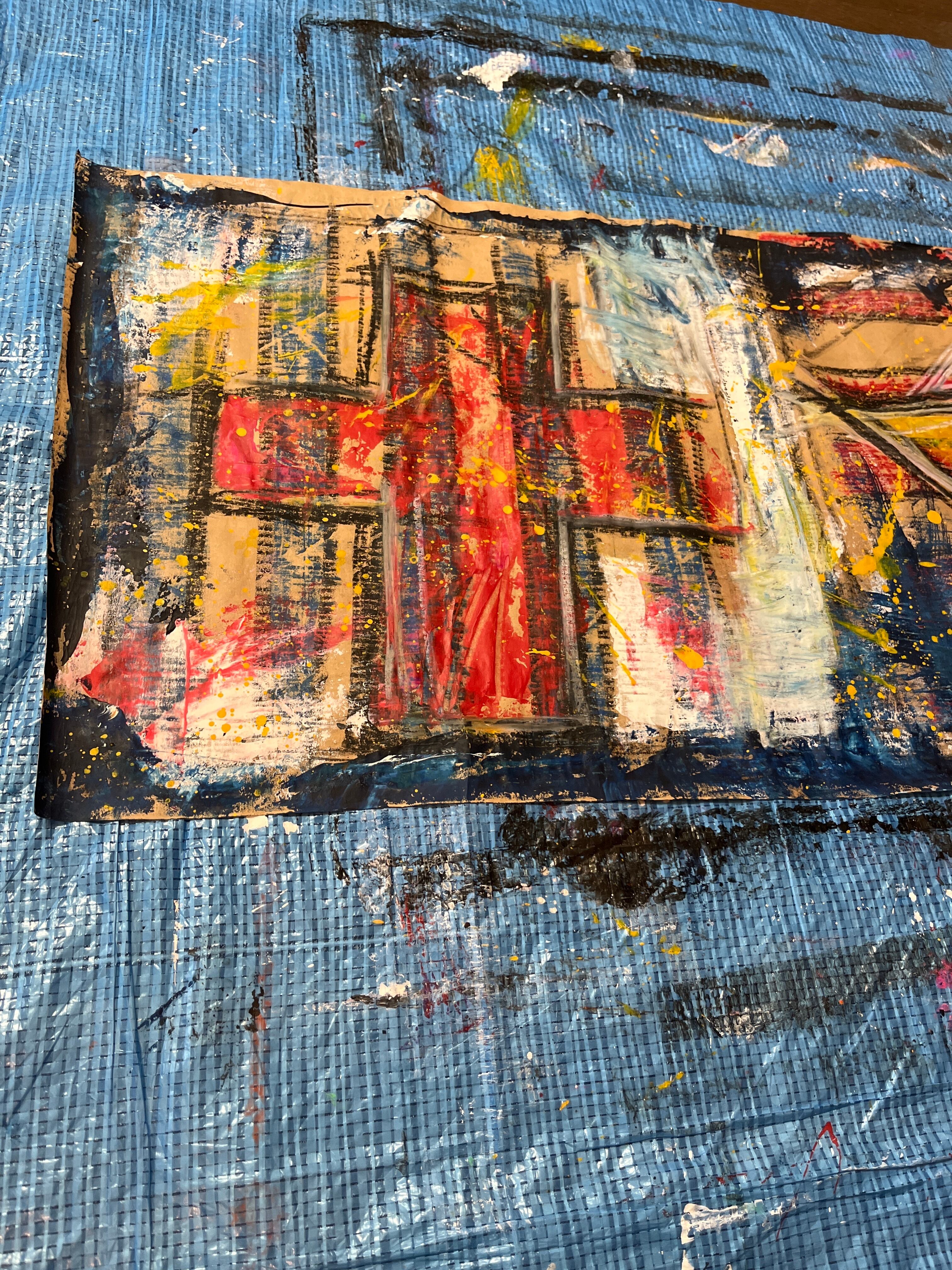 紙、ビニール、アクリル絵の具、クレヨン、ペンキなど